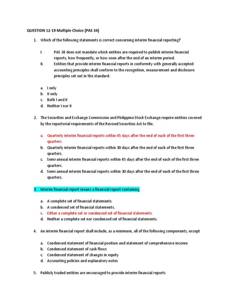 The year-end financial statements are deemed not to comply with IFRS. Pas 34 mandates which entities are required to publish interim FS how frequently or how soon after the end of an interim period. The year-end financial statements compliance with PFRS IFRS is not affected.